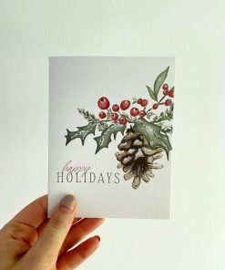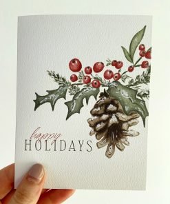 Happy Holidays Watercolor Christmas Greeting Card / Watercolor Holiday Greeting Card / Happy Holidays Greeting Card