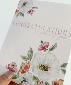 A soft and sweet watercolor floral congratulations greeting card – perfect for flower lovers, your best friend or significant other to say congratulations on special occasions (graduation, a new home, a new job, etc.)